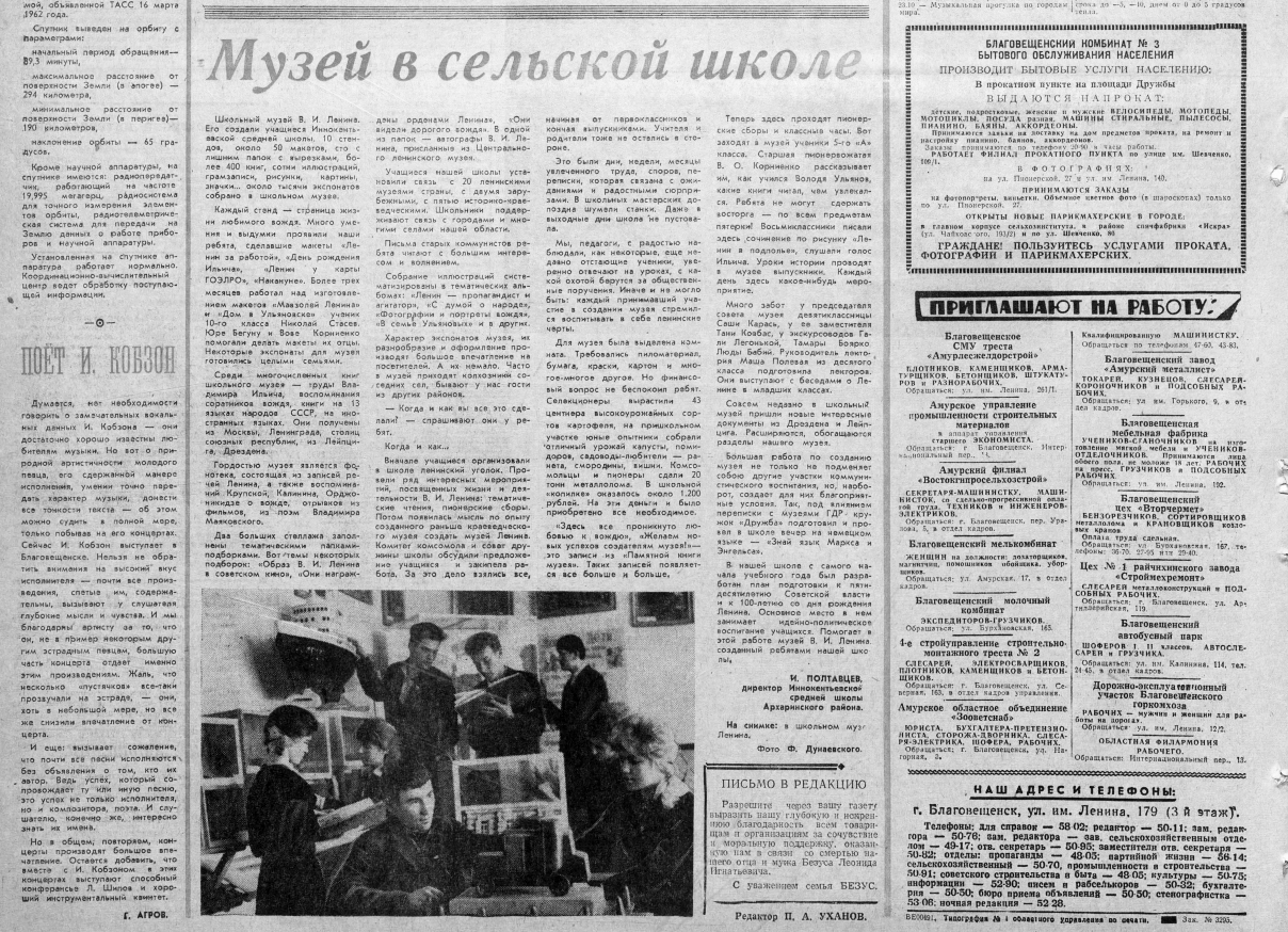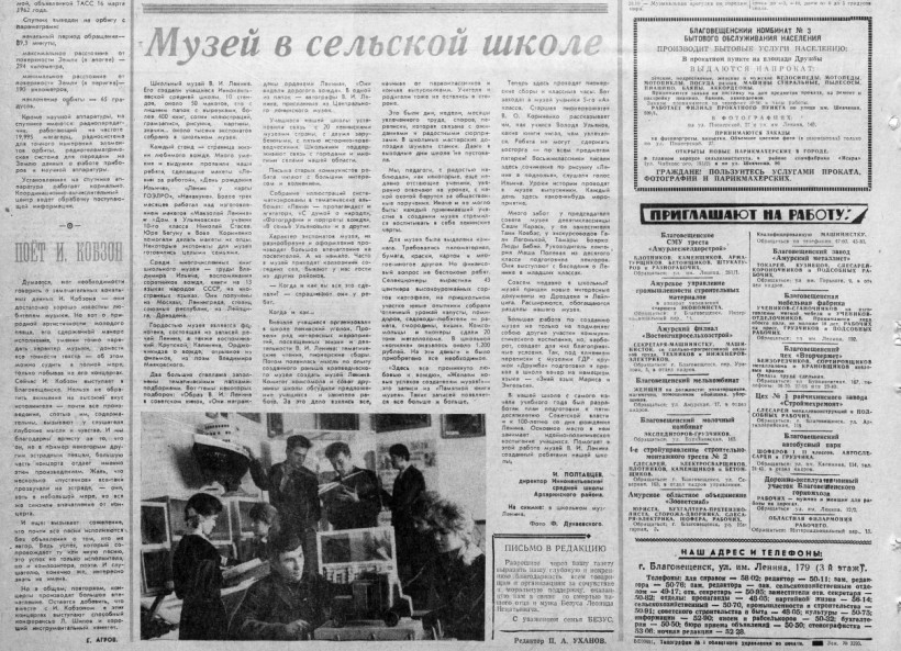 Особое внимание уделяли подрастающему поколению, ведь именно в детях видели продолжателей дела Ильича. В 1966 году газета рассказывала об учениках Иннокентьевской средней школы, создавших музей Ленина с тысячей экспонатов, стендами и макетами.