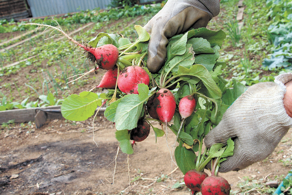 Крайний срок посадки редиса весной — 5 мая. Посеяли, заделали на небольшую глубину (до 2 см) и пролили рядки. Никакой «химии» при выращивании первого овоща не используется, так как у него короткие сроки созревания.