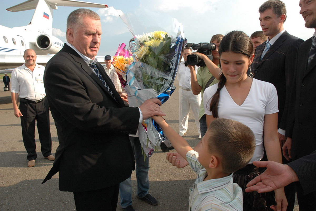 — У меня на тот момент было четверо детей, парнишек. И нам разрешили проход прямо к самолёту. Когда Жириновский спустился по трапу, его со всех сторон окружили соратники, стали приветствовать. И вот все идут, разговаривают, а Жириновский внимательно поглядывает на детей, которые бегают вокруг нас. Потом остановился и воскликнул: «Ах, вот какие дети на Дальнем Востоке!»