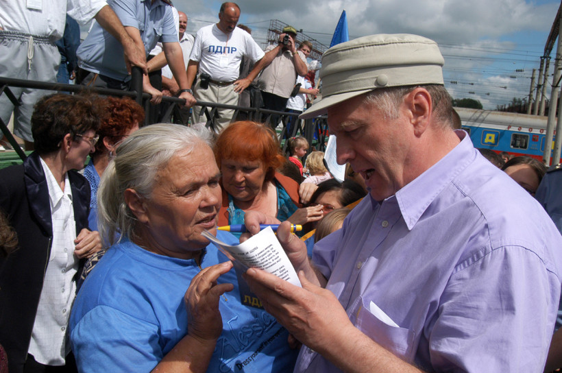 Он действительно обладал умением очаровать людей, влиять на толпу: живой, яркий, неординарная личность. На площади возле ОКЦ тоже было не протолкнуться. Помню интересный момент: Жириновский направился к своему кортежу — и вдруг через кольцо охраны, минуя телохранителей, проскочила бабуля с большой книгой в руках. Все регламенты нарушила! Она кинулась к Жириновскому: «Владимир Вольфович, подпишите, пожалуйста». Он, такой: «Как тебя звать?» — «Люба». Взял ручку и размашисто что-то стал писать. Я потом подошел и посмотрел — на книге было написано: «С уважением, к Любови ВВЖ».