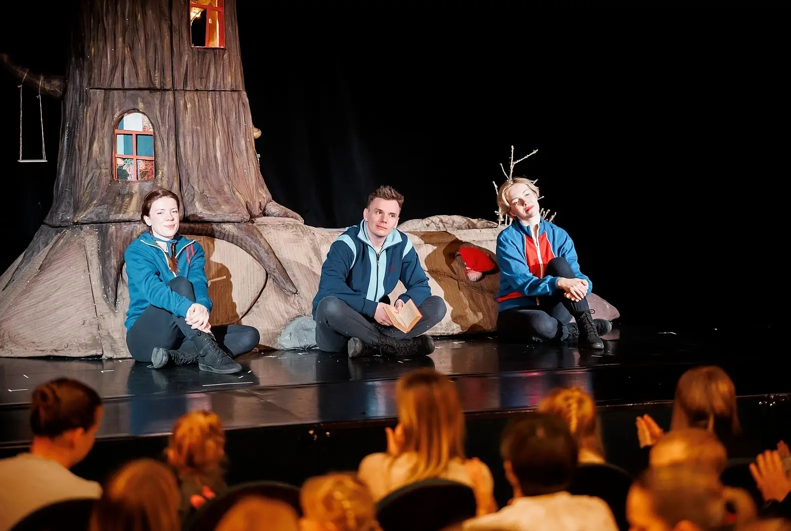 Еще до начала спектакля в Амурском областном театре кукол артисты Полина Корнилова, Тамара Путрик и Анатолий Макаровский встречали маленьких гостей на сцене.