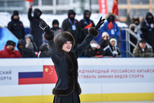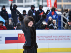 Этот вечер юные амурские фигуристки будут вспоминать всю жизнь. Ледовая арена «Гагарин Лёд» в Благовещенске на один час превратилась в большую школу мастерства: тренировку для восходящих звезд провела легенда мирового фигурного катания — Евгения Медведева. Олимпийская чемпионка приехала в Приамурье в качестве почетного гостя «ЗимФестАмура» и встретилась на льду со спортсменками.