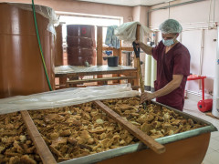 «Я прогноз погоды смотрю в телефоне чаще, чем на часы. Если жара спадает и стоят дожди — спрос на квас сразу падает, — признается руководитель благовещенского филиала тындинской компании по производству кваса Сергей Глоба. — Наша работа зависит от капризов небесной канцелярии». Самый популярный летний напиток здесь изготавливают на сухарях из хлеба, который пекут специально для производства. Благодаря этому квас, который до сих пор называют тындинским, уже знают по всей области и за ее пределами. Как производят натуральный продукт без добавок, от чего зависит цвет напитка и почему производителю не подходят полностью автоматизированные линии розлива — увидели корреспонденты «Амурской правды».