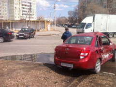 В амурской столице сегодня, 15 апреля, произошло тройное ДТП с участием учебного автомобиля. Грузовой фургон Isuzu выехал на перекресток Горького — Комсомольской и столкнулся с вишневой Lada Granta. От удара легковушку отбросило на учебный транспорт. В результате аварии водителю Lada потребовалась медицинская помощь. Девушка-ученица автошколы некоторое время не могла оправится от шока.