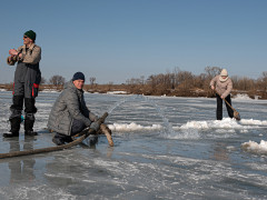 Рёв мотопомпы, рокот ледобура, бесконечный плеск воды — тишина и покой обитателей второго Владимирского озера бесцеремонно нарушены. Амурские экологи и рыбаки, вооружившись инструментами, вышли на лед с намерением не распугать рыбу, а облегчить ей жизнь. К концу зимы толщина льда на местных водоемах доходит до двух метров, а уровень растворенного кислорода в воде снижается до критических отметок — рыба задыхается. Чтобы предотвратить ее массовую гибель, последние десять лет на озерах области проводится аэрация. Кто и как спасает амурских карасей, выяснял корреспондент АП.