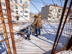 Двухлетний Захар Чуканов вместе с папой Денисом, словно альпинисты, карабкаются вверх по накатанному склону. Для удобства отец обмотал малыша собственным шарфом и туго завязал под мышками. Правда, штурмуют они не горную вершину, а вход в детский сад № 34 «Солнышко» в Прогрессе. В этом году мальчик получит путевку в дошкольное учреждение, и такая тренировка на ловкость и выносливость станет ежедневным ритуалом для всей семьи. Почему дети и их родители вынуждены добираться до детсада по крутому склону или грязному месиву, кто и зачем наглухо заварил калитку благоустроенного центрального входа — разбиралась «Амурская правда».