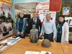 Руководитель передвижного музея «Автобус Победы» Василий Семенов передал вечный огонь Сталинграда, каски советского воина, участвовавшего в битвах на Мамаевом Кургане, и землю с места сражений в музей при 23-й школе в Моховой Пади, сообщили в пресс-службе мэрии Благовщенска.