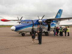 Девять месяцев самому маленькому пассажиру, который прилетел из Тынды в Благовещенск первым авиарейсом Тында — Благовещенск. По словам мамы, жительницы северной столицы Марины Цикало, к полету сын отнесся спокойно: всю дорогу спал. «Конечно, это не такой уровень комфорта, как в большом самолете, зато путь занимает всего два часа! Для меня, мамы двух детей, это ключевой фактор. Еще и по цене более выгодно. Обратно тоже на самолете полетим», — поделилась планами Марина. Рейс Тында — Благовещенск привез 12 пассажиров, при том что на «Чебурашке» — так пилоты называют самолет L-140 —17 посадочных мест. Журналисты «Амурской правды» встретили первый рейс, соединивший столицу БАМа и областной центр.