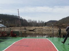 Жители посёлка Береговой Зейского района дождались открытия паромной переправы через реку Гилюй. Из-за ледохода посёлок две недели находился в транспортной блокаде. Сегодня, 11 мая, на воду спустили паром. По традиции паромщики разбили о корму бутылку шампанского — на счастье.