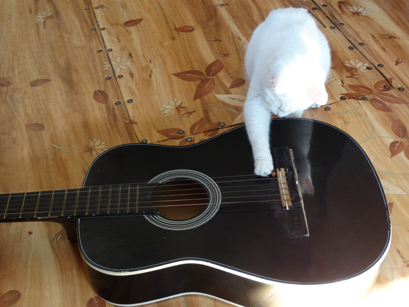1. Выбрать из ранее существующих или сделать новую фотографию, где главный герой (это можете быть вы, ваш друг, знакомый, ребенок, домашний питомец) играет на музыкальном инструменте. Что за музыкальный инструмент у него в руках, а может быть и лапах – тут уж решать вам! Кастрюли, ложки, бокалы, губная гармошка, рояль, баян, скрипка, гитара – играть можно на чем только душа пожелает! Главное условие – вдохновение и нестандартный подход!