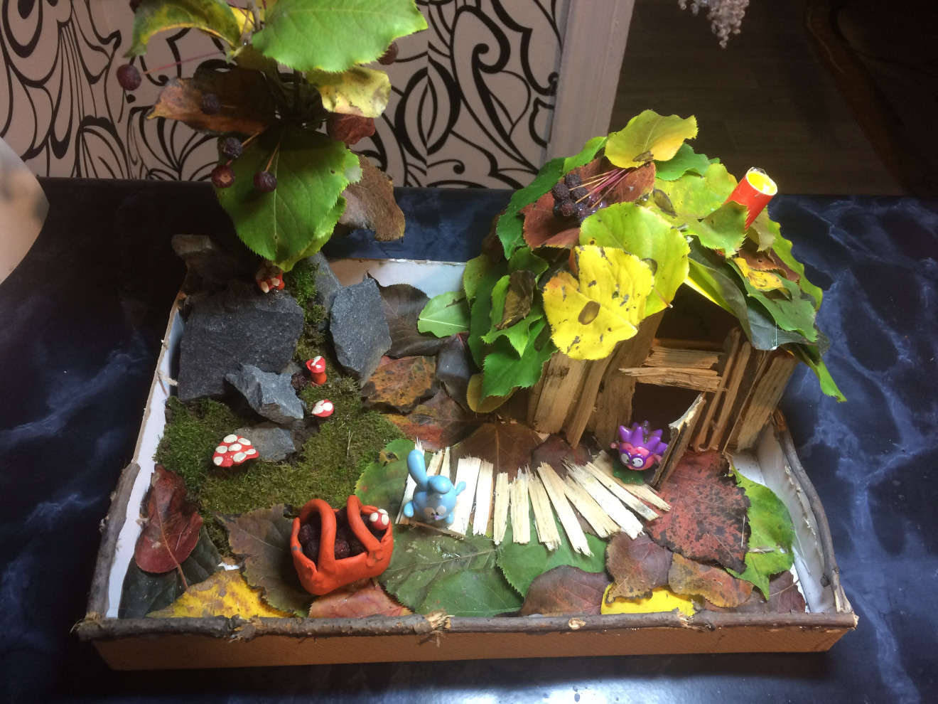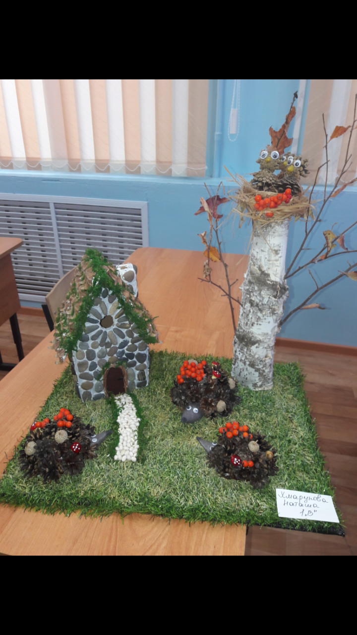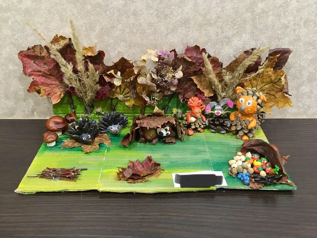 1. Смастерить (или взять уже готовую для садика или школы) поделку из природных материалов. Сфотографировать ее.