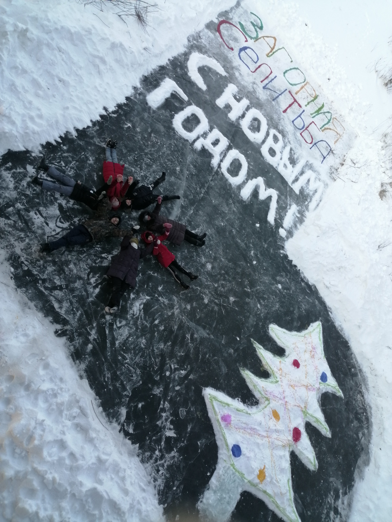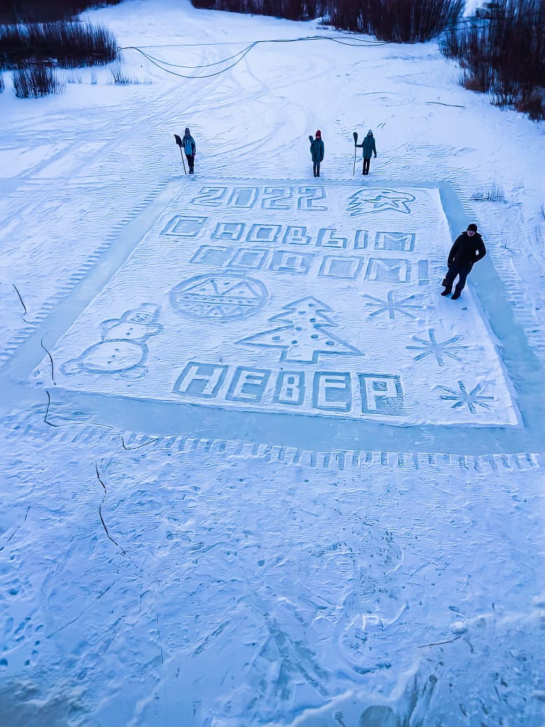 Нарисовать подручными средствами на любом водоёме открытку, сфотографировать и загрузить на на сайт www.ampravda.ru в раздел «Конкурсы» — «Чудеса на льду — 2021».