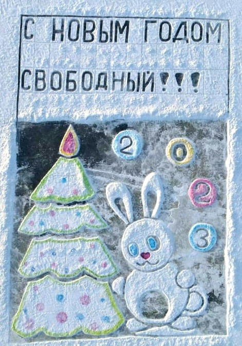 Нарисовать подручными средствами на любом водоёме открытку, сфотографировать и загрузить на сайт www.ampravda.ru в раздел «Конкурсы» — «Чудеса на льду — 2022».