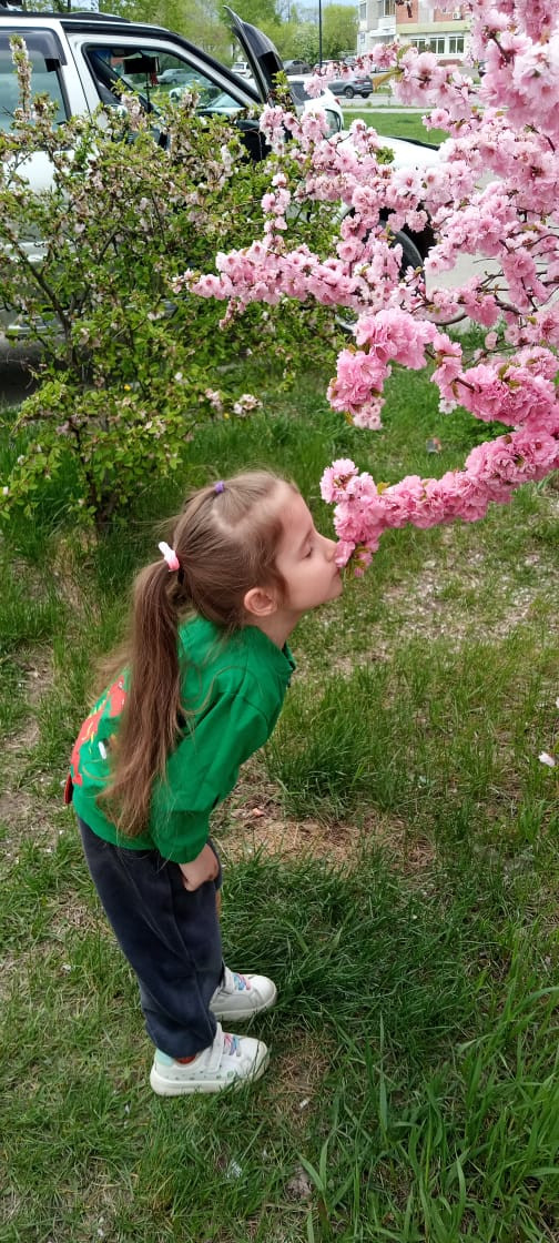 1. Сфотографировать или выбрать в своем архиве цветущие деревья, кустарники и любые цветы. В кадре могут присутствовать как люди — врослые и дети, так и животные.