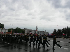 Знамя Победы с пятницы, седьмого мая, гордо реет над Благовещенском. Алый стяг — копия штурмового флага 150-й ордена Кутузова II степени Идрицкой стрелковой дивизии, который водрузили в 1945 году над Рейхстагом — сменил привычный триколор на набережной Амура. За торжественной церемонией поднятия флага со слезами на глазах наблюдали и журналисты «Амурской правды».