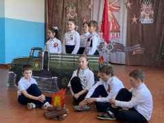 Фронтовой грузовик в руках, песни у картонного костра, вальс Победы, автоматы Калашникова и легендарный «День Победы» под аккомпанемент юных аккордеонистов — в школе поселка Береговой Зейского округа 80-летний юбилей Победы в Великой Отечественной войне отметили фестивалем военно-патриотической песни. Свои вокальные, танцевальные и театрализованные номера подготовили малыши и старшеклассники вместе с учителями. И пусть выступления проходили не в концертном зале, а в крыле учебного заведения, а зрителями стали сами дети и коллектив школы, ребятам удалось самое главное — вспомнить и душевно исполнить песни, которые помогали их прадедам приближать Победу.