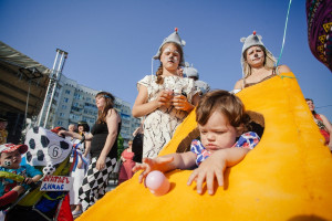 В Благовещенске мамы прокатили малышей в сыре и футбольном мяче