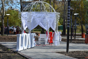 В Белогорске открыли новый сквер с фонтаном и аркой из пяти сердец для влюбленных (фото)