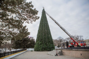 На главной площади Благовещенска установили 21-метровую ель (фоторепортаж из городка)