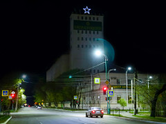 В праздники, когда на Благовещенск спускаются сумерки, на башне элеватора группы компаний «Амурагроцентр» загорается пятиконечная звезда. Этот декоративный элемент здания появился на его фасаде еще в советскую эпоху — во второй половине 60-х годов прошлого века. «Звезду, рассказывают ветераны предприятия, установили на рабочей башне элеватора с момента его постройки, — говорит главный энергетик ООО «Амурагроцентр» Олег Хлопцев. — Она сразу стала символом как для коллектива «Благкомхлебопродукта», так и для всего населения примыкающих к мукомольному предприятию районов города».
