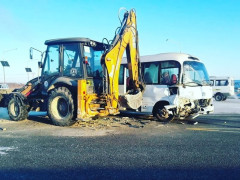 В среду, 12 января, на подъезде к Свободному произошла авария. Около восьми часов утра на автодороге столкнулись пассажирский автобус Hyundai и экскаватор CASE.