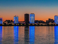 Высотные здания в Хэйхэ, которые видно с благовещенской набережной, изменили красный цвет на синий. Теперь с них транслируется надпись «Безопасный интернет для народа».