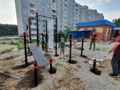 Современный спортивный комплекс заказал из Москвы житель одной из многоэтажек в Тынде. Сергей Умеринков за свои деньги приобрел не только оборудование, но и резиновое напольное покрытие. Теперь вместе с другими жителями дома по улице Октябрьская, 22А он монтирует новую площадку.