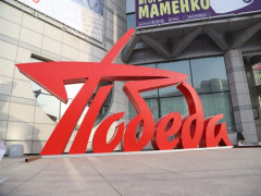 Конструкция в виде слова «Победа» с праздничной подсветкой появилась возле входа в здание Общественно-культурного центра в Благовещенске.