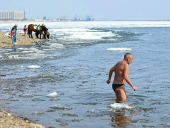 Закаленные благовещенцы открыли купальный сезон на Амуре. Причем экстремалов не смущает, что температура воды в реке около нуля градусов и до сих пор идет ледоход.