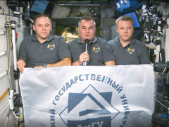 Космонавты Алексей Овчинин, Иван Вагнер и Александр Горбунов поздравили коллектив университета с юбилеем с борта Международной космической станции.